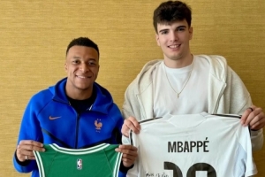 在活动中,姆巴佩和凯尔特人前锋乌戈·冈萨雷斯两人交换了球衣。