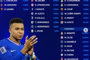德转更新法国队身价:姆巴佩2亿欧、奥利塞1.3亿欧、登贝莱1亿欧