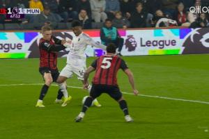 体育资讯03月21日讯 英超第31轮,曼联客战伯恩茅斯。67分钟,阿玛德禁区内倒地,裁判没有表示。伯恩茅斯随后发动反击扳平比分。